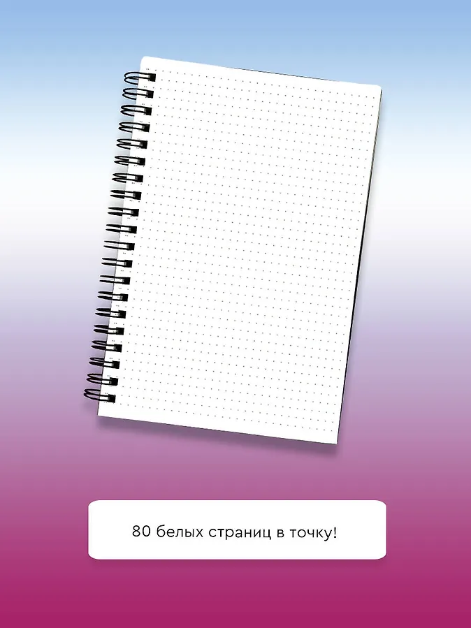 Блокнот в точку от Татьяны Задорожней @fevrony. Легкий, с приятным покрытием софт-тач, компактный формат 13,6×20,6 см, на пружине, 80 белых страниц в точку.