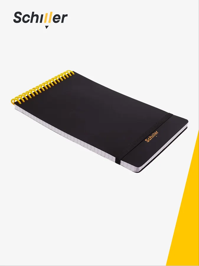 Блокнот 120*190 80л кл. «Black» пласт.обл., спираль, резинка, SchillerБлокнот 120*190 80л кл. «Black» пласт.обл., спираль, резинка, Schiller