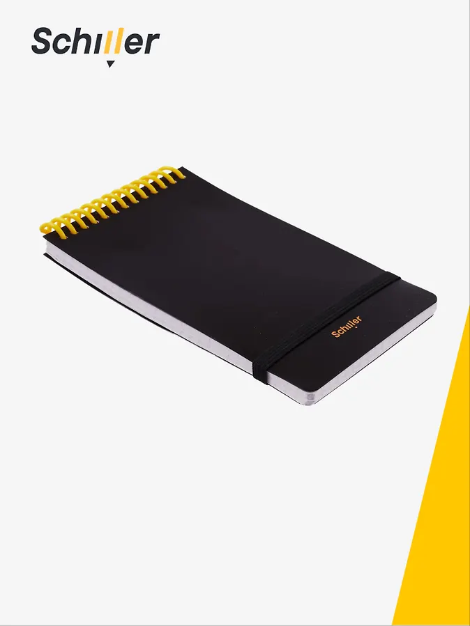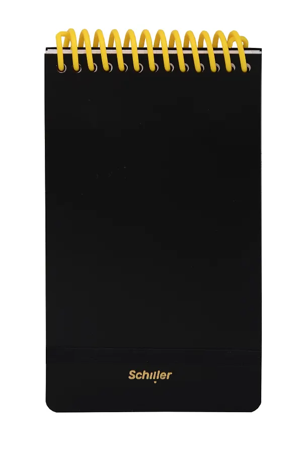 Блокнот 90*150 80л кл. «Black» пласт.обл., спираль, резинка, SchillerБлокнот 90*150 80л кл. «Black» пласт.обл., спираль, резинка, Schiller