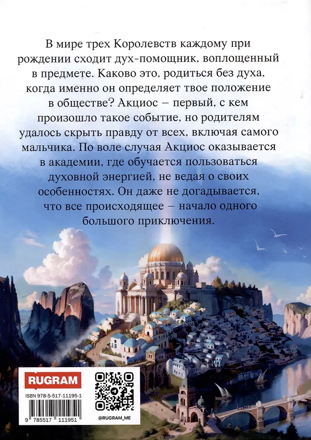 В мире трех Королевств каждому при рождении сходит дух-помощник, воплощенный в предмете. Каково это, родиться без духа, когда именно он определяет твое положение в обществе? Акциос – первый, с кем произошло такое событие, но родителям удалось скрыть правду от всех, включая самого мальчика. По воле случая Акциос оказывается в академии, где обучается пользоваться духовной энергией, не ведая о своих особенностях. Он даже не догадывается, что все происходящее – начало одного большого приключения.