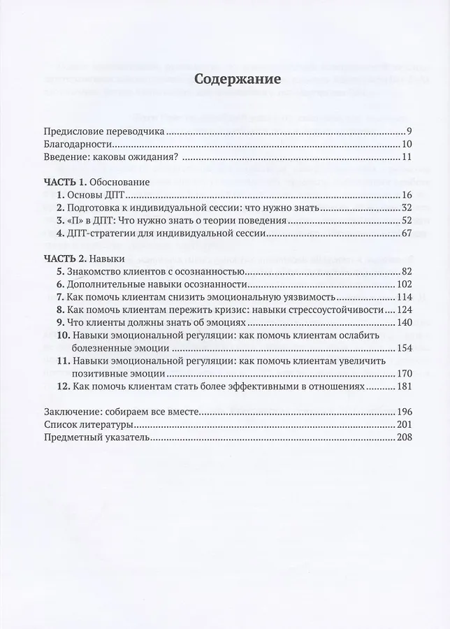 Практикующие врачи найдут здесь несколько стратегий и принципов ДПТ, много клинических примеров, диалогов и советов по устранению проблем. В то же время изложенный материал предоставляет практическим специалистам гибкость в выборе компонентов навыков ДПТ, которые могут помочь удовлетворить потребности соответствующих клиентов.