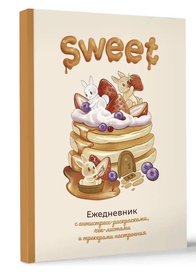 Sweet-ежедневник содержит чек-листы, трекеры настроения, а также листы для записей ваших мыслей и идей. Страницы с раскрасками помогут расслабиться и снять стресс, а милые зайчики поднимут настроение и создадут атмосферу уюта.