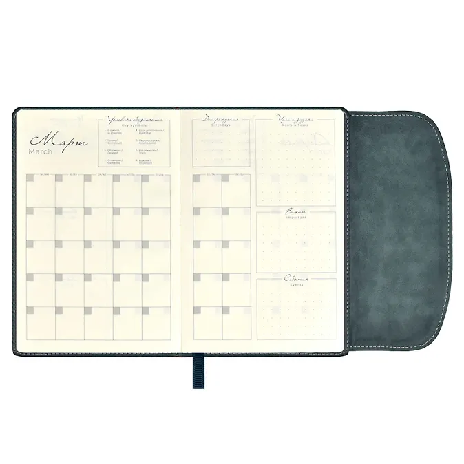 Ежедневник недат. А5 160л «Плезир» морская волна, иск.кожа, тв.переплет, блинт.тиснение, офсет, ляссе- Распродажа со склада