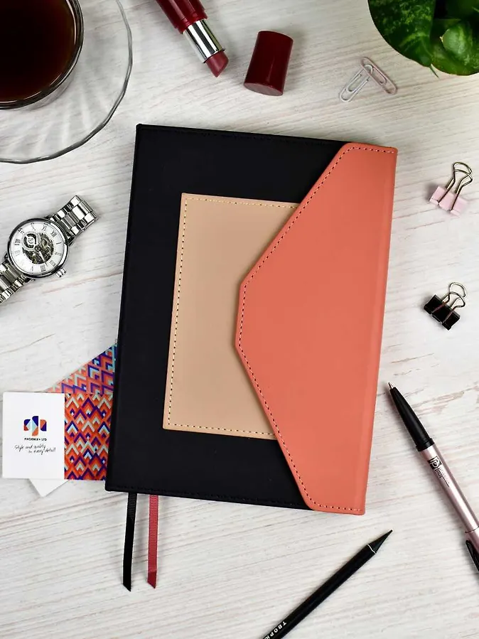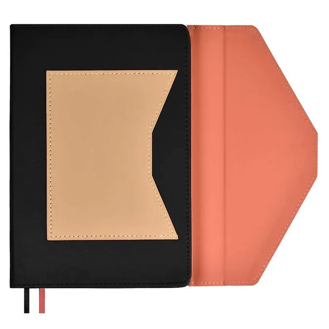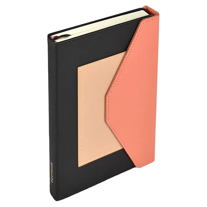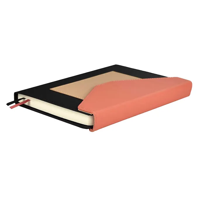 Ежедневник недат. А5 160л «Руффо» чёрный, розовый, бежевый, иск.кожа, тв.переплет, офсет, ляссе- Распродажа со склада