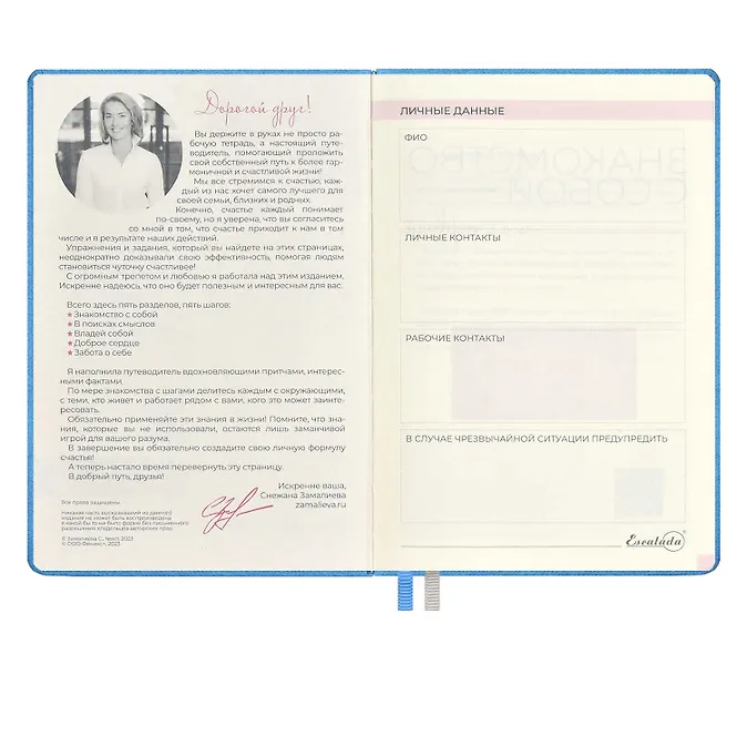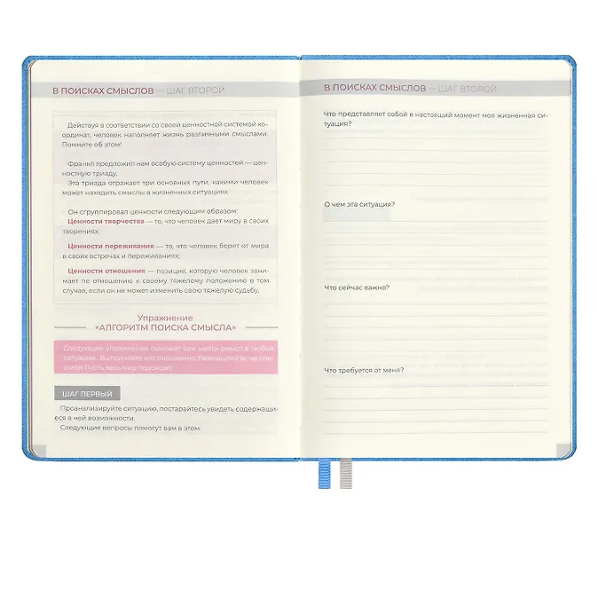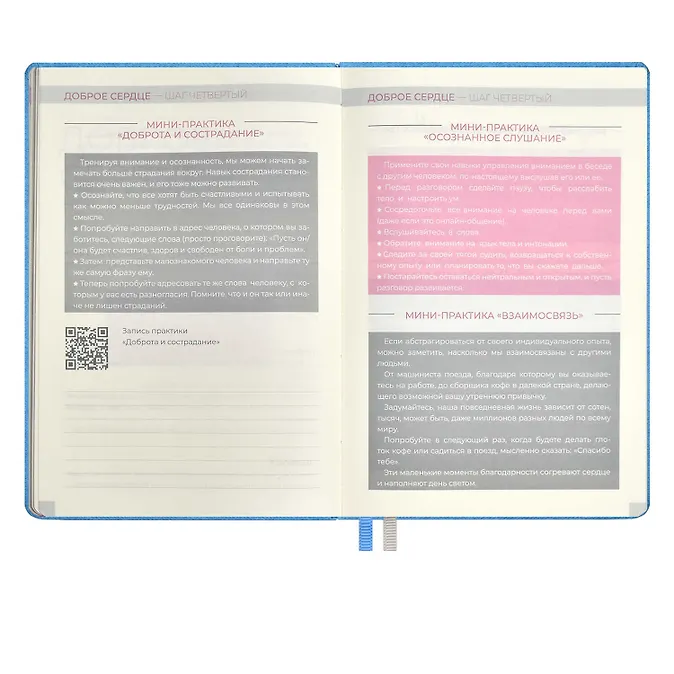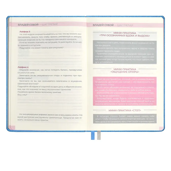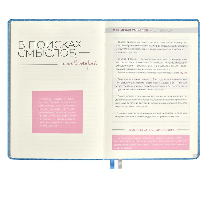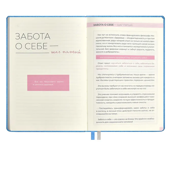 Ежедневник недат. А5 160л «5 шагов к счастью» Мотивационный, голубой, иск.кожа «джинс», тв.переплет, тисн.фольгой, офсет, ляссе- Распродажа со склада