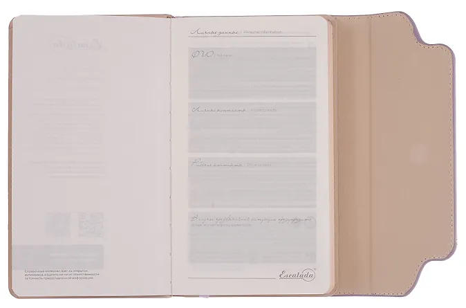 Ежедневник недат. А6+ 120л «Плезир» беж. и сиреневый, кожзам, тв.переплет, тисн.фольгой, закругл.углы, офсет, справ.мат-лы, ляссе, инд.уп- Распродажа со склада