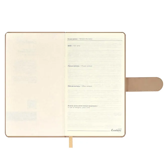 Ежедневник недат. А6+ 120л 110х190 «Бейбискин» бежевый, иск.кожа, тв.переплёт, тиснение фольгой, магнит.клапан, офсет, ляссе