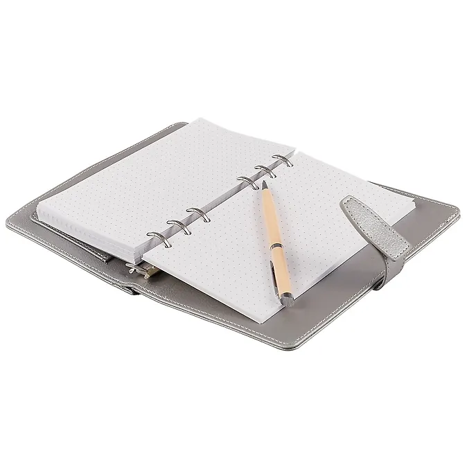 Ежедневник-органайзер недатированный арт.47623/15 НАППА СЕРЕБРЯНЫЙ (А6+, 190х140, 320 стр., дополнительное отделение-«портмоне» на молнии как часть обложки, застёжка «клапан в петле», обстрочка обложки по периметру нитками в цвет переплётного материала, кольцевой механизм на шесть колец, дополнительные карманы для документов и визиток, твёрдый переплёт, белый офсет, 70, блинтовое тиснение, одна краска, дизайн блока:линия ,кольцевой механизм, спр. мат: нет, картонная коробка + ПЭТ-пакет)