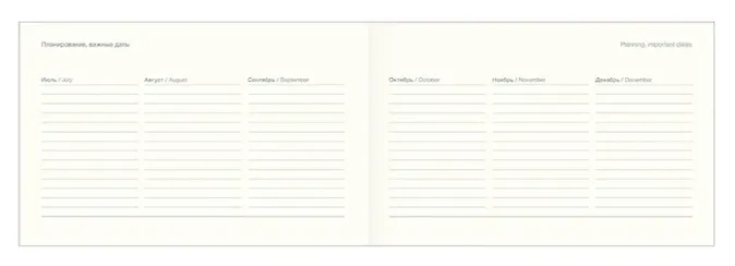 Также внутри блока: титульный лист для записи данных, разворот с календарями на 2026-2027 года, раздел «планирование и важные данные», чтобы перед глазами были сразу все самые важные задачи каждого месяца, и страницы для дополнительных заметок.