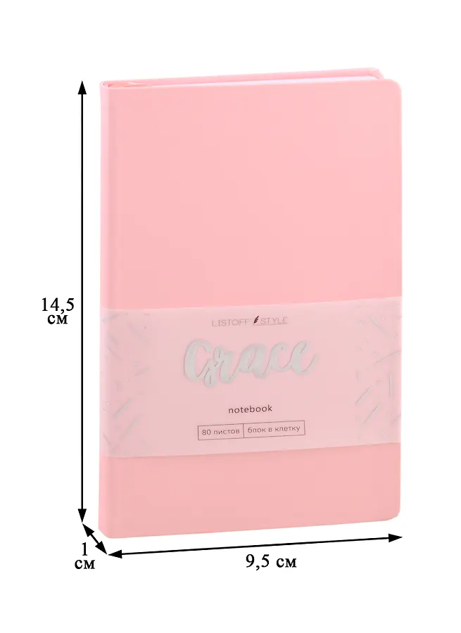 Записная книжка А6- 80л кл. «Graсe» пастельно-розовый, иск.кожа, ляссе, инд.уп.- Распродажа со склада