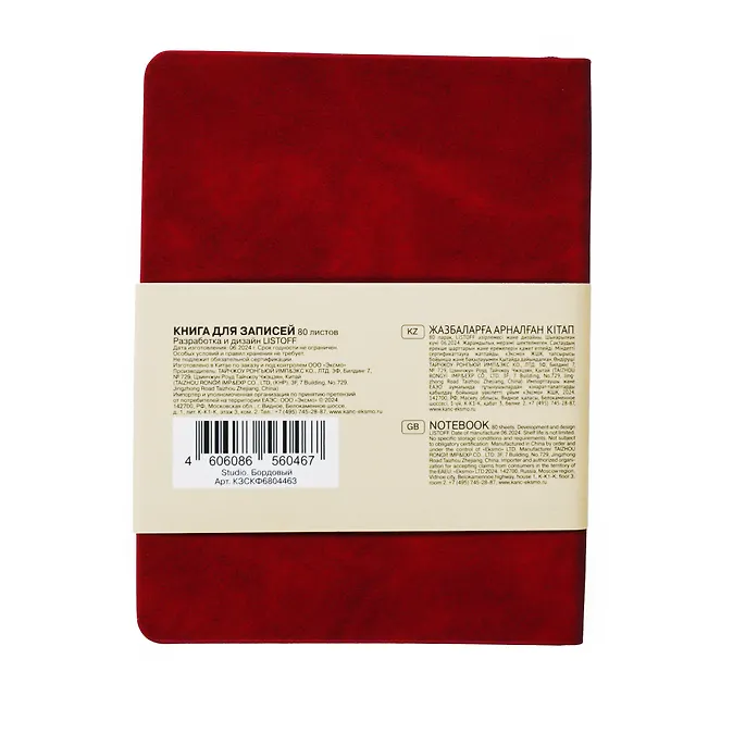 Записная книжка А6 80л кл. «Studio. Бордовый», иск.кожа,интегр.обл., скругл.углы, ляссе- Распродажа со склада