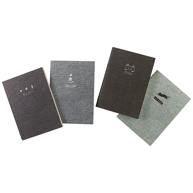 Закажите и узнайте, какая записная книжка станет вашей любимой – чёрная, синяя, тёмно-синяя или серо-зелёная.