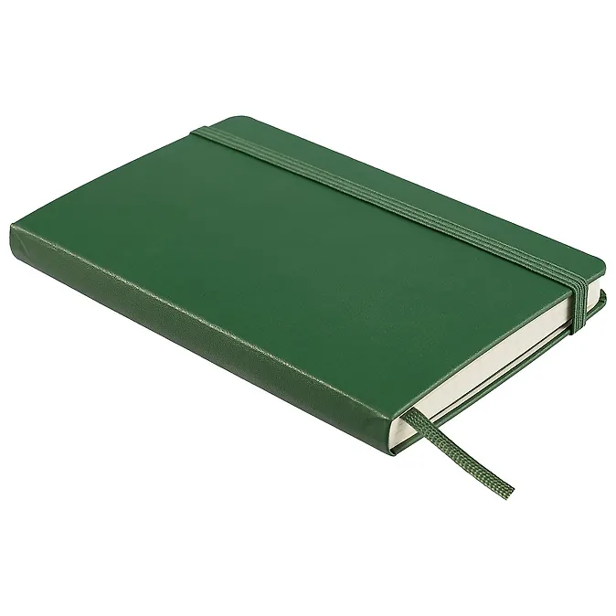 Записная книжка с твердой цветной обложкой с закругленными углами, закладкой, эластичной застежкой и вместительным внутренним карманом.