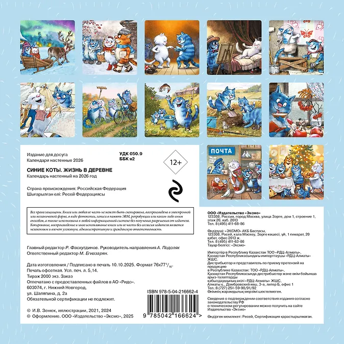 Календарь 2026г 170*170 «Синие коты. Жизнь в деревне» настенный, на скрепкеКалендарь 2026г 170*170 «Синие коты. Жизнь в деревне» настенный, на скрепке