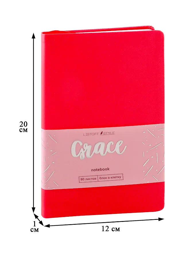 Книга для записей А5- 80л кл. «Graсe» коралловый, иск.кожа, ляссе, инд.уп.- Распродажа со склада
