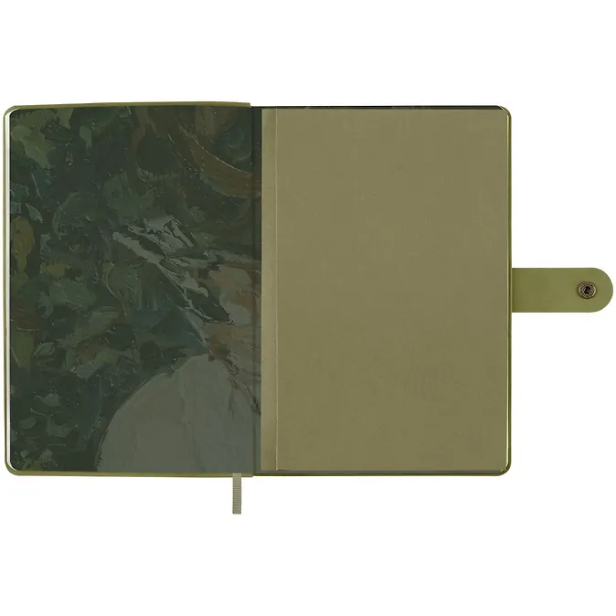 Внутренний блок состоит из 80 листов тонированной бумаги повышенной плотности 80 г/кв.м. Книжка закрывается на кнопку, что дополнительно защищает листы от замятий и загрязнений. Предусмотрен кармашек для заметок и визиток. Закладка-ляссе позволяет открывать записную книжку сразу на нужной странице. Изделие поставляется в индивидуальной упаковке.