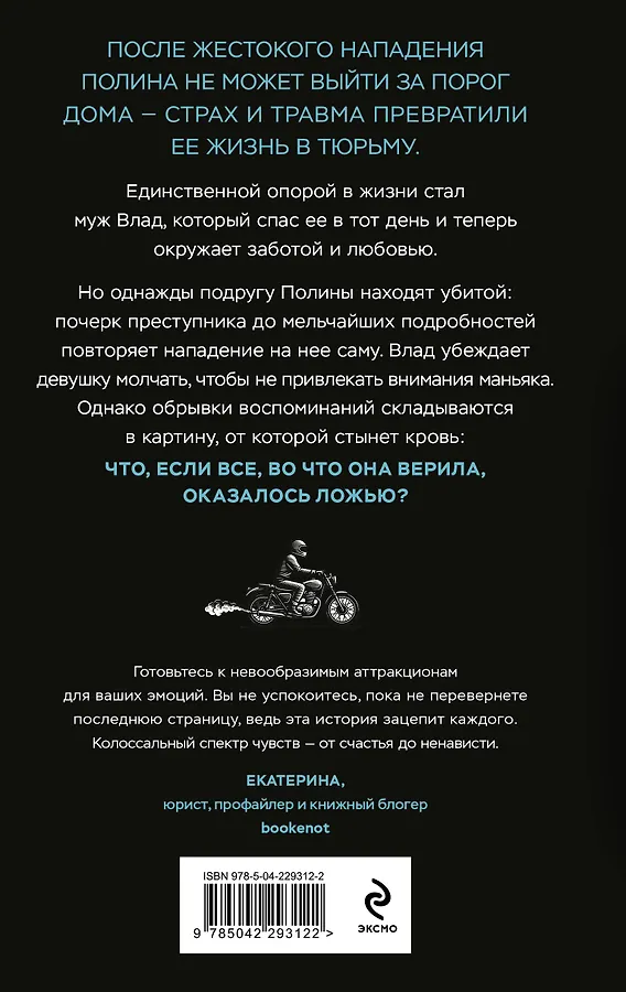 Но однажды подругу Полины находят убитой: почерк преступника до мельчайших подробностей повторяет нападение на нее саму. Влад убеждает девушку молчать, чтобы не привлекать внимание маньяка. Однако обрывки воспоминаний складываются в картину, от которой стынет кровь:что если все, во что она верила, оказалось ложью?
