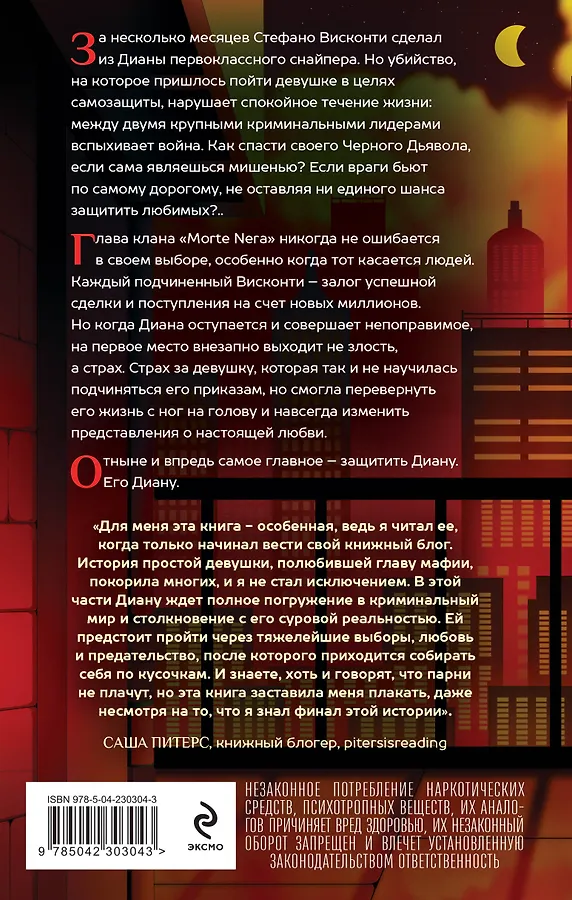 За несколько месяцев Стефано Висконти сделал из Дианы первоклассного снайпера. Но убийство, на которое пришлось пойти девушке в целях самозащиты, нарушает спокойное течение жизни: между двумя крупными криминальными лидерами вспыхивает война. Как спасти своего Черного Дьявола, если сама являешься мишенью? Если враги бьют по самому дорогому, не оставляя ни единого шанса защитить любимых?..