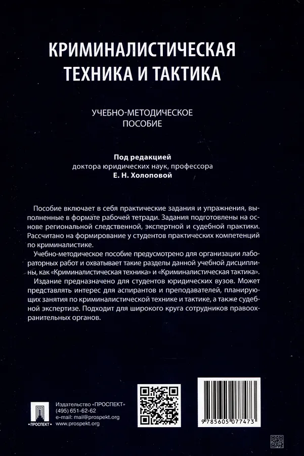 Пособие включает в себя практические задания и упражнения, выполненные в формате рабочей тетради. Задания подготовлены на основе региональной следственной, экспертной и судебной практики. Рассчитано на формирование у студентов практических компетенций по криминалистике. Учебно-методическое пособие предусмотрено для организации лабораторных работ и охватывает такие разделы данной учебной дисциплины, как «Криминалистическая техника» и «Криминалистическая тактика». Законодательство приведено по состоянию на 1 октября 2023 г. Издание предназначено для студентов юридических вузов. Может представлять интерес для аспирантов и преподавателей, планирующих занятия по криминалистической технике и тактике, а также судебной экспертизе. Подходит для широкого круга сотрудников правоохранительных органов.