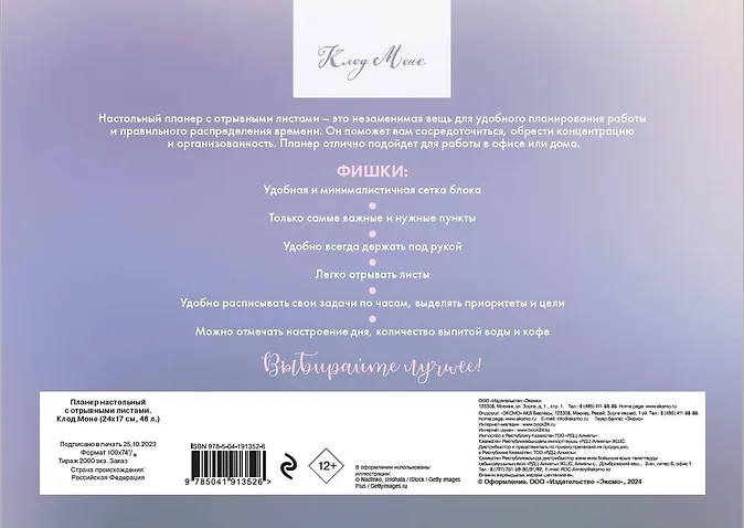 Настольный планер с отрывными листами – это незаменимая вещь для удобного планирования работы и правильного распределения времени. Он поможет вам сосредоточится, обрести концентрацию и организованность. Планер отлично подойдет для работы в офисе или дома.