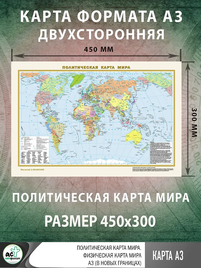 Политическая карта мира. Физическая карта мира А3 (в новых границах)Политическая карта мира. Физическая карта мира А3 (в новых границах)