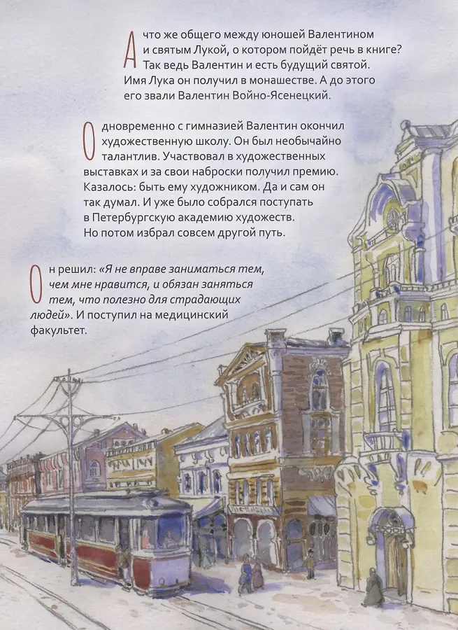В этой книге рассказывается о жизни человека с удивительной судьбой. Святитель Лука Крымский (1877-1961) — блестящий хирург, учёный, духовный писатель и автор книг по медицине. Он стал священником в сложное время гонений на Церковь, прошёл тюрьмы, ссылки и пытки. Вся его жизнь -это подвиг исповедничества. Он любил Христа и до конца жизни служил людям, и в особенности страждущим, с невероятной любовью и самоотверженностью. Святитель Лука считал лечение больных величайшим делом, которое есть подражание Самому Христу.