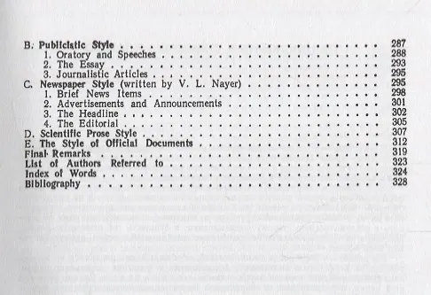 The book presents a vision of general problems of stylistics and offers a stylistic classification of the English vocabulary. Along with a description of phonetic, lexical and lexical-phraseological expressive means, it reviews different syntactical expressive means and problems concerning the composition of spans of utterance larger than the sentence. A chapter is dedicated to give a classification of functional styles of the English language. A set of illustrative texts is presented.