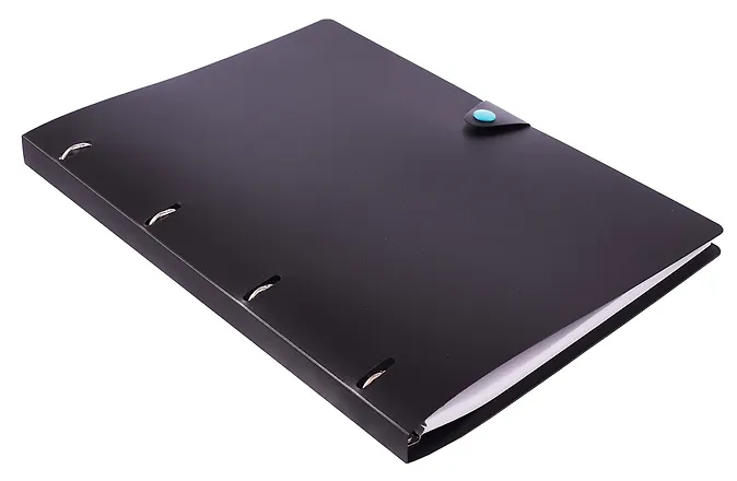 Тетрадь FAVORITE BLACK – это воплощение элегантности и практичности. Изысканный черный пластик, который защищает листы бумаги от влаги и каплей. Тетрадь на кольцах удобна в использовании, имеет сменный блок, который дает возможность добавлять новые страницы и разделы в записях. Тетрадь фиксируется на кнопку, внутренний блок всегда надежно защищен, а листы не будут теряться в ваших сумках и рюкзаках. Ощутите безупречное сочетание стиля и функциональности.
