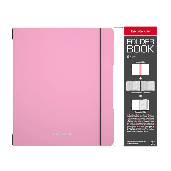 Тетрадь общая ученическая формата А5+ (170×203 мм) со сменными блоками FB Solution в пластиковой обложке. В комплект входят две тетради 48 листов на скобе в клетку с полями. Удобная система крепления на резинках дает возможность быстрой замены тетрадей, а фиксирующая резинка предотвращает нежелательное раскрытие. Эргономичный дизайн: специальные выемки на обложке облегчают перелистывание. Обложка из высококачественного износостойкого матового пластика с фактурой «песок». Бумага офсетная плотностью 60 г/м2. Цвет линовки — синий. Скругленные уголки обложки и блока. Рекламный вкладыш с информацией о товаре. Тетради упакованы в пакет по 2 штуки. Сменные блоки FB Solution можно купить отдельно, но также для данной обложки подойдет любая тетрадь на скобе А5+ ErichKrause®.