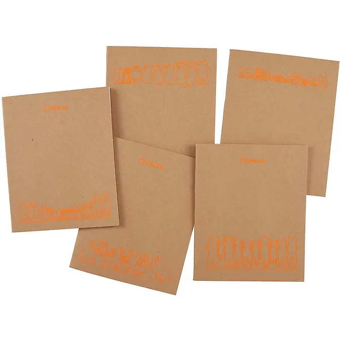 Тетради от компании «Канц-Эксмо» формата А5. В качестве обложки используется крафт-картон, повышенной плотности. На контрасте с крафт-картоном используется трафаретная печать. Неповторимый контраст, необычный подбор материалов и вида отделки выделит данную позицию на полке.