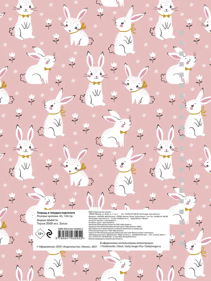 Тетрадь в твердом переплете. Розовые кролики. А5, 120 стр.Тетрадь в твердом переплете. Розовые кролики. А5, 120 стр.