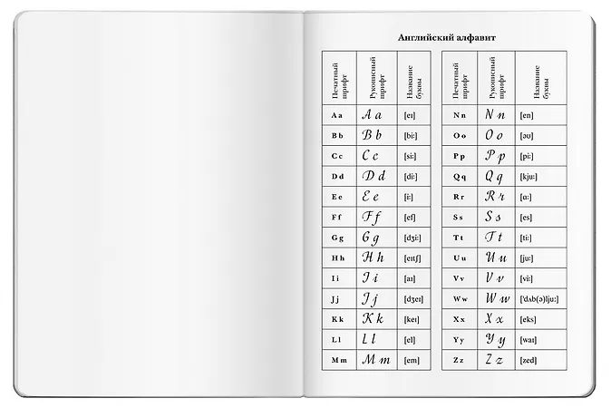 В тетради есть английский алфавит, правила чтения, таблица из 100 неправильных глаголов и таблица правильных глаголов, представляющих орфографические трудности.