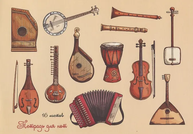 Тетради для нот от компании «Канц-Эксмо» — внутренний блок состоит из 16 листов, содержит нотный стан представляющий собой пять линий. Обложки тетрадей украшены музыкальной символикой.
