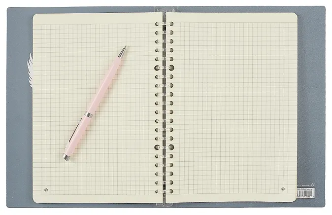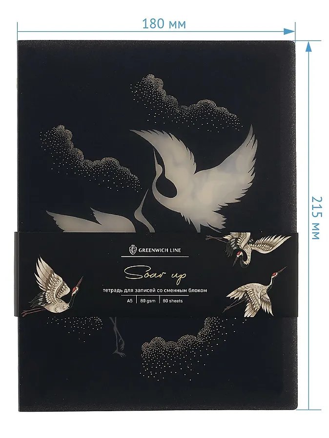 Тетрадь на кольцах Greenwich Line Soar up очень лёгкая, компактная и удобная в применении. Модель отличает прочная пластиковая обложка с рисунком японских журавлей на чёрном фоне и титульный лист из плотной бумаги, повторяющий дизайн обложки. Тетрадь формата А5 (180*215 мм) с 20 мини-кольцами дополнена прозрачным механизмом для лёгкой смены блоков. При открывании фиксатора внизу, кольца раскроются. После замены листов верните его в исходное положение до лёгкого щелчка. Принцип открывания смотрится эффектно, а маленькие кольца не мешают при письме.