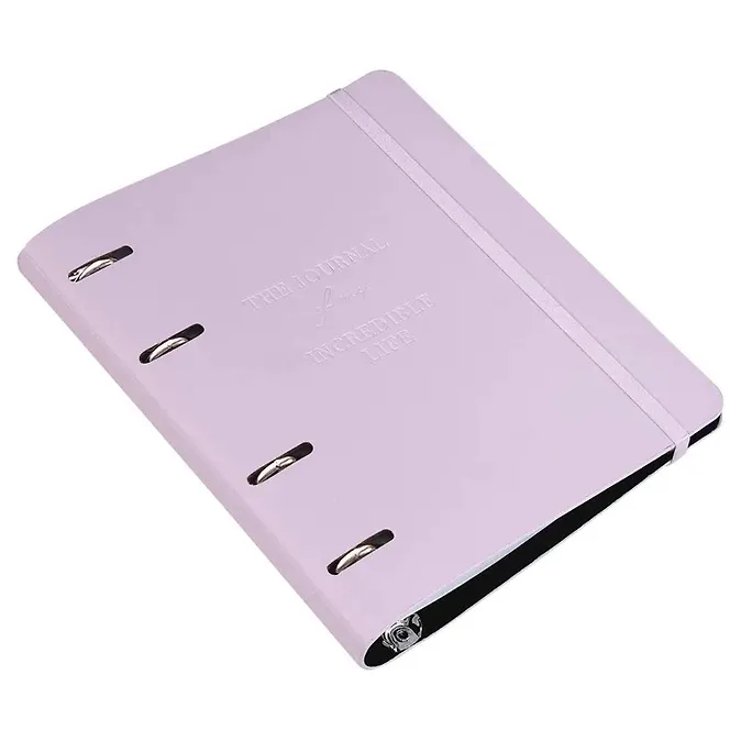 Тетрадь Journal от Infolio подойдёт для учёбы, планирования и рабочих заметок — записи удобно вести в клетку, а формат А5 легко помещается в сумку или рюкзак. Крепление на кольцах позволяет быстро добавлять и переставлять страницы: сменный блок удобно обновлять, когда он закончится. Сиреневая обложка из экокожи смотрится аккуратно и приятна на ощупь, блинтовое тиснение добавляет строгий акцент. Резинка фиксирует тетрадь в закрытом виде и помогает сохранить листы в порядке.