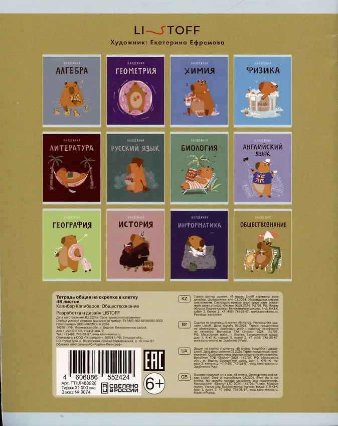 Будьте первым, кто оставил отзыв на «Тетрадь предметная в клетку Listoff, «Капибар Капибаров. Обществознание», 48 листов»