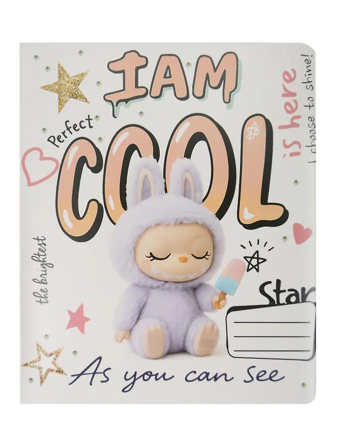 Тетрадь школьная ученическая [170х205 мм]. Обложка из высококачественного мелованного картона плотностью 180 г/м2. В блоке 12 листов в клетку с полями. Бумага офсетная плотностью 60 г/м2. Цвет линовки — синий. Скругленные уголки обложки и блока. Тип скрепления — скоба.