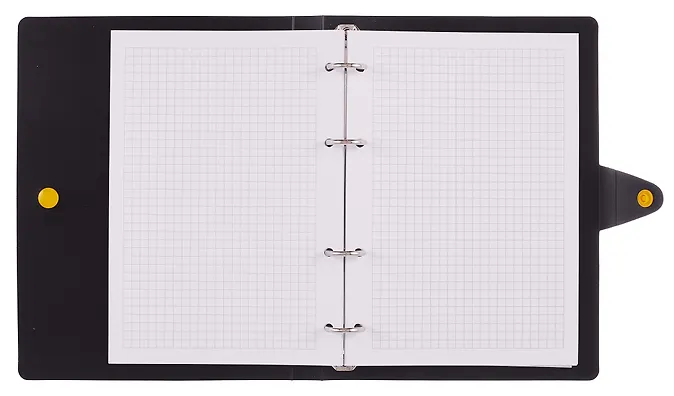 Тетрадь FAVORITE BLACK – это воплощение элегантности и практичности. Изысканный черный пластик, который защищает листы бумаги от влаги и каплей. Тетрадь на кольцах удобна в использовании, имеет сменный блок, который дает возможность добавлять новые страницы и разделы в записях. Тетрадь фиксируется на кнопку, внутренний блок всегда надежно защищен, а листы не будут теряться в ваших сумках и рюкзаках. Ощутите безупречное сочетание стиля и функциональности.