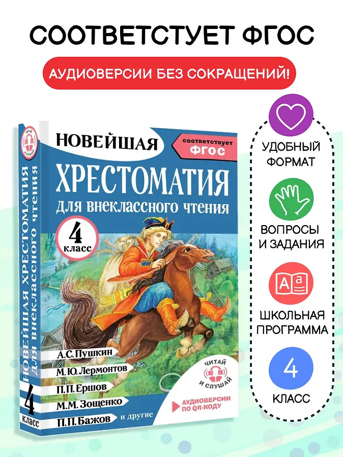 Хрестоматия для внеклассного чтения. 4 класс. Аудиоверсии по QR-коду