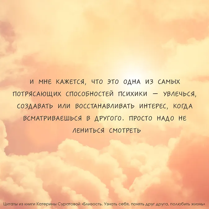 Ради этого ощущения мы вступаем в отношения, заглядываем в себя и находимся в непрекращающемся диалоге с самой жизнью. Опытный психолог Катерина Суратова разберет условия, необходимые для возникновения близости, и способы достижения близости с собой, окружающими и миром.