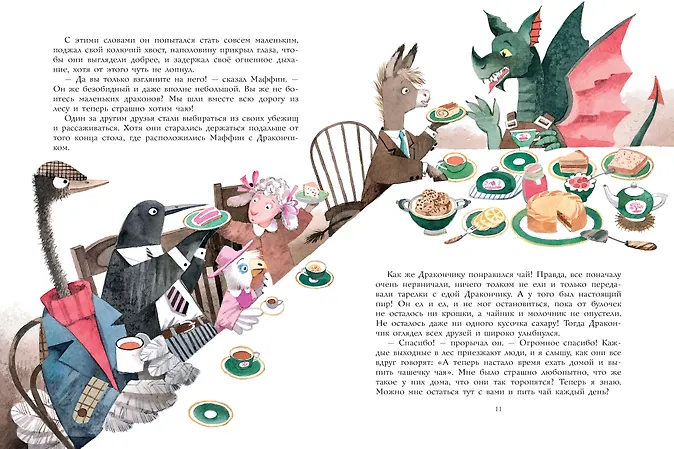 Знаменитый ослик Маффин возвращается! Он собрал множество новых историй о своих приключениях — невероятно весёлых, захватывающих и поучительных. В этой книге читатель снова встретится с хорошо знакомыми героями — пингвином Перегрином, щенком Питером, страусом Освальдом. Но Маффин найдёт и новых друзей: он познакомится осьминогом Отто и бельчонком Скипом, самым настоящим Драконом, прекрасной Русалочкой и многими другими! Иллюстрации для этой книги нарисовала знаменитая художница, лауреат множества премий Надежда Бугославская, а перевёл и немного пересказал истории о новых приключениях ослика Маффина известный переводчик Михаил Вирозуб.