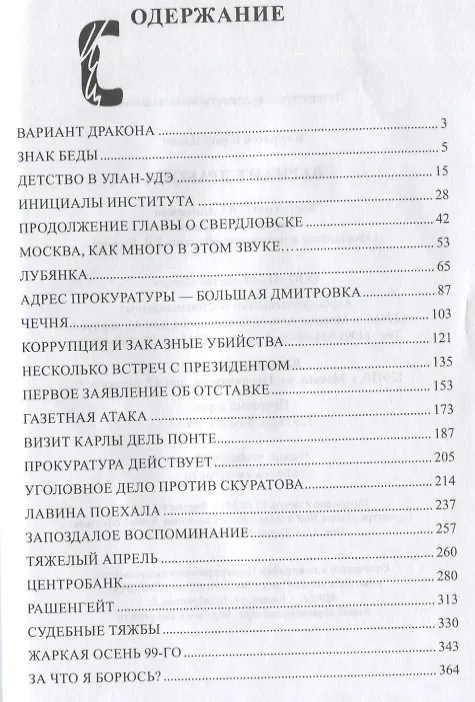 .В книге «Вариант дракона» автор повествует о драматической истории своего ухода с должности Генерального прокурора России, раскрывает истинные причины своей отставки и перипетии его тяжелейшей борьбы с коррумпированной государственной бюрократией.